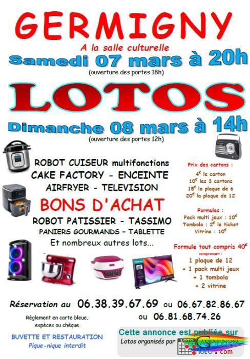 L'association Germi'noël organise son loto devenu un rendez-vous pour les mordus de loto à la salle culturelle de Germigny (89) le 08 mars 2026.