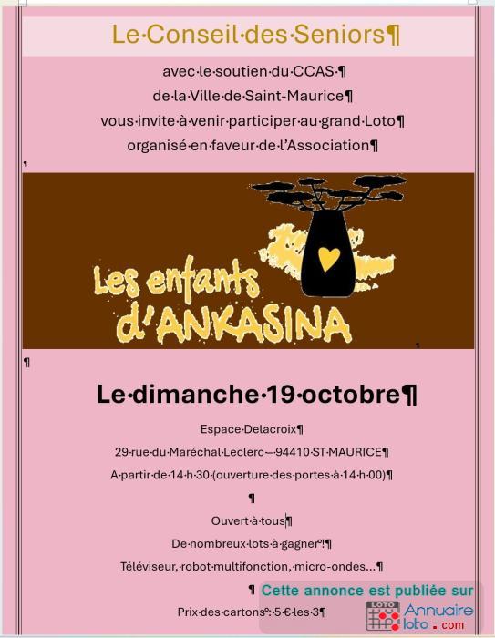 Loto des Séniors organisé par le CCAS en faveur de l’Association "Les" Enfants d'Ankasina" (Madagascar)